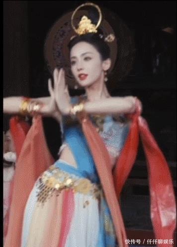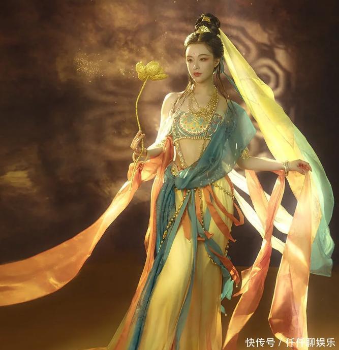 Angelababy杨颖也有穿过同款的飞天服饰,妆容精致的她配上立体的脸庞,硬照就已经美成了游戏建模,仿佛仙女下凡。