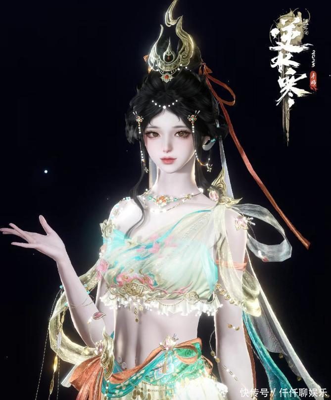 张予曦曾为《逆水寒》拍摄过双面大片,其中身穿鸿音造型的敦煌服饰也美上热搜,她绝美的建模脸加上游戏的神女造型,就是西域来的顶级舞娘。