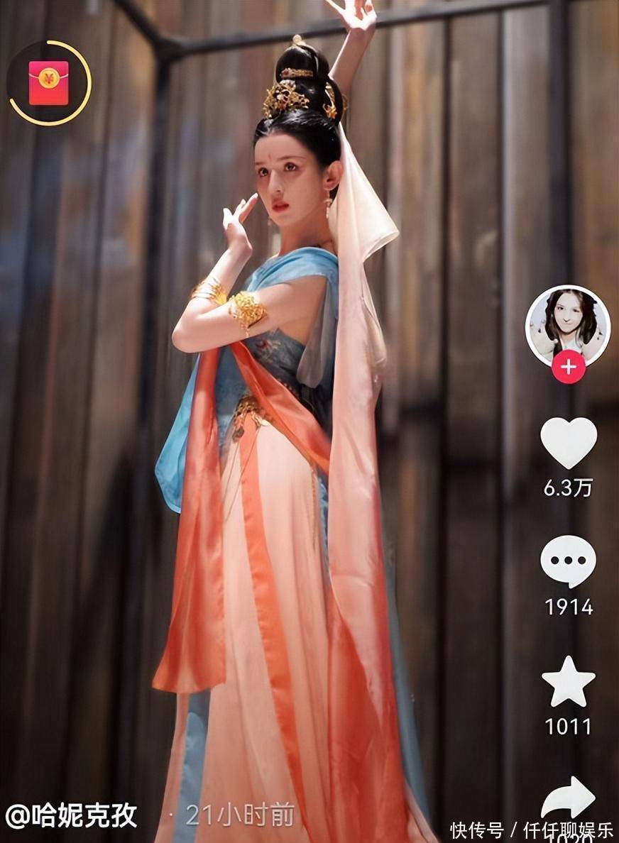 还有哈妮克孜的鸿音舞造型,刚发出就获得百万播放,艳丽的飞天服饰把她异域感再度升级,虽然这么多大美女都身穿同一套鸿音时装,但都美得百花齐放,各有各的不同。
